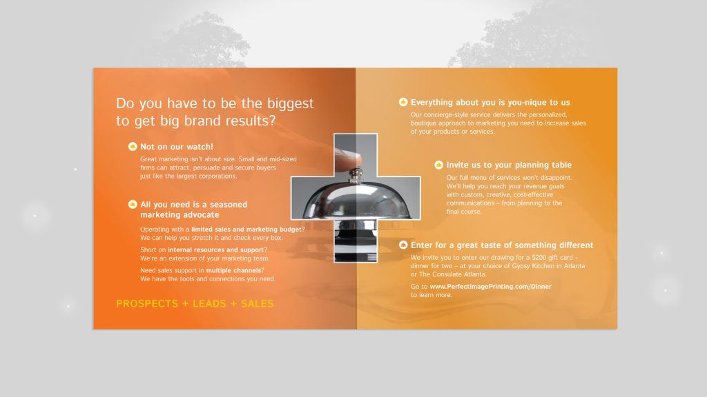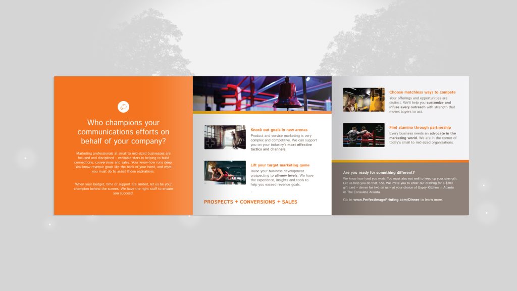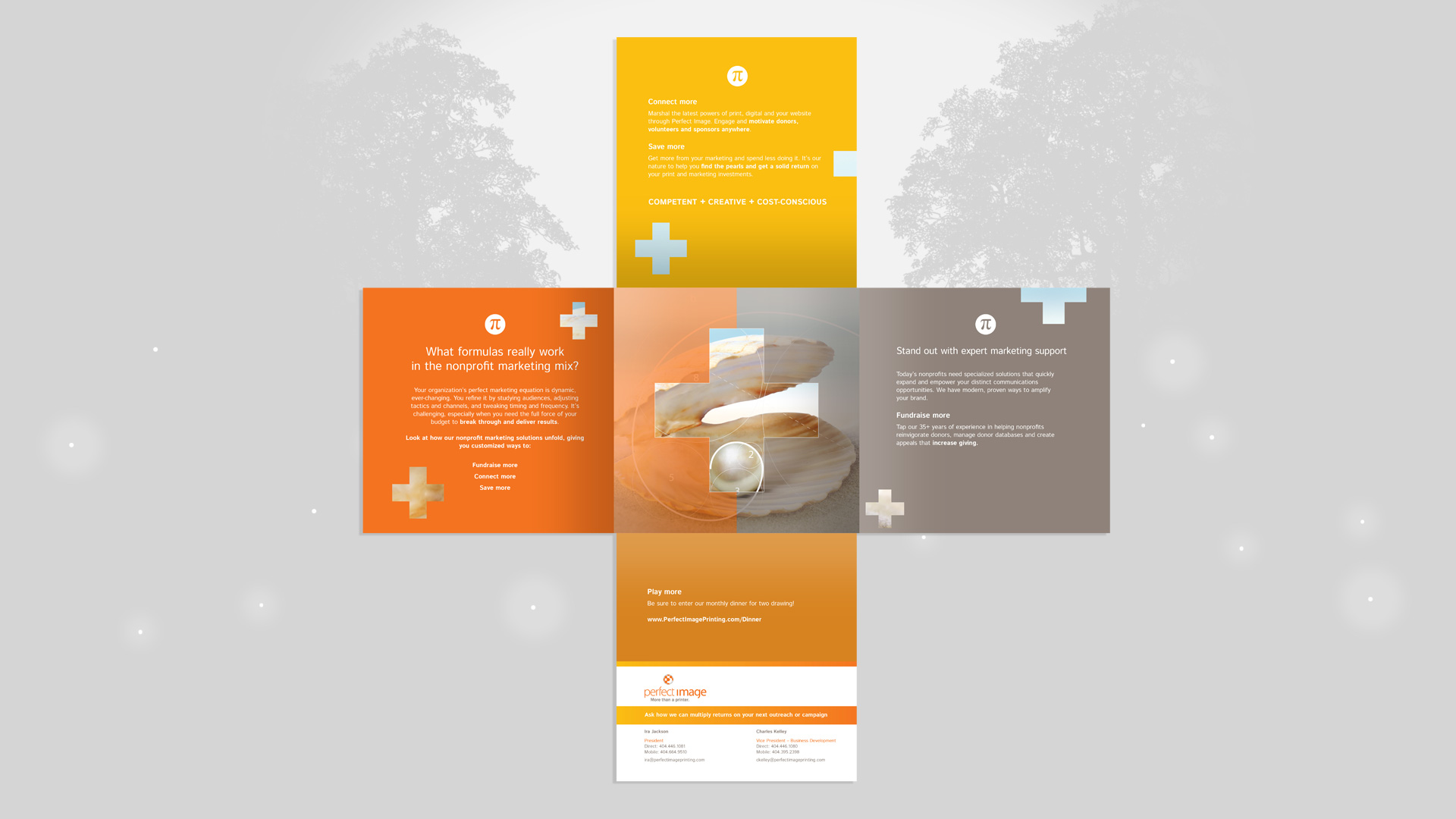 A leader in commercial printing, Perfect Image expanded its role from printer to a more robust marketing services partner. This mailer campaign features variable data and dimensional inks to showcase Perfect Image’s new press.