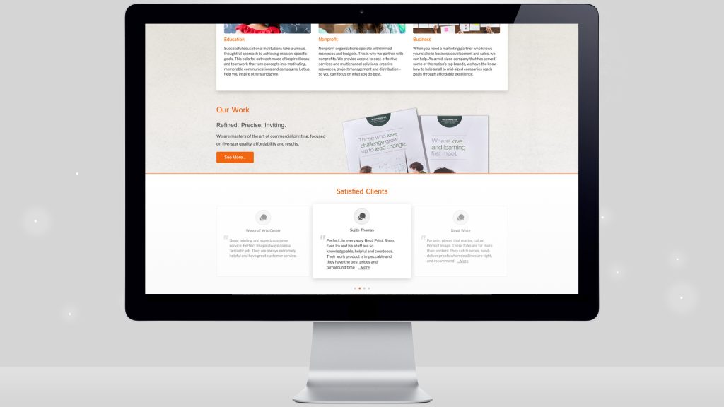 After the branding concept, we created a web style guide to build the new Perfect Image website. We also supplied website graphics to the development team at Kamerge.