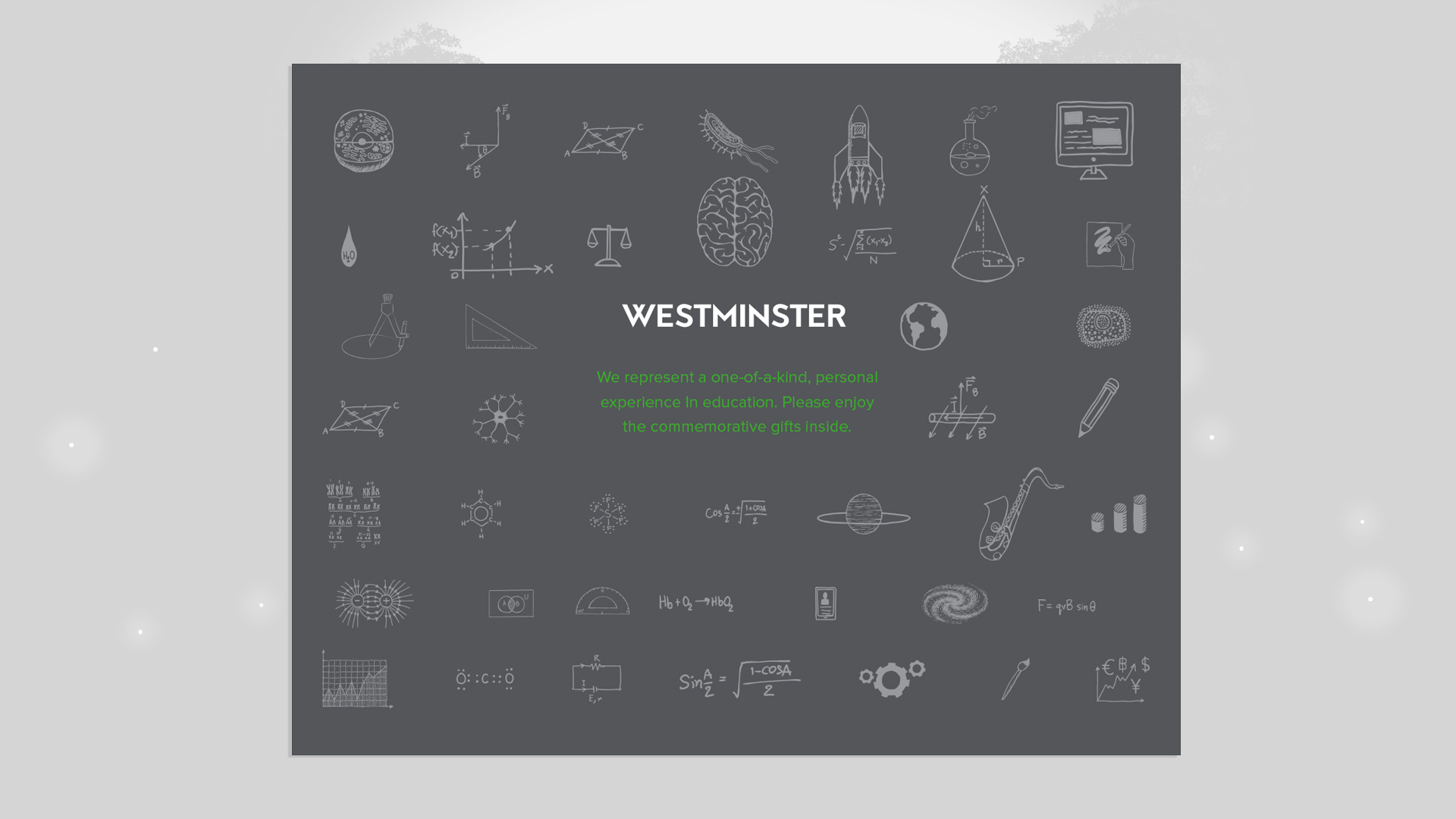 Westminster School was founded on a mission to prepare students for college and for life. The goal of this project was to excite future students about attending Westminster. Drawing on the concept of a welcome package, this design communicates the school’s commitment to a personalized education experience.
